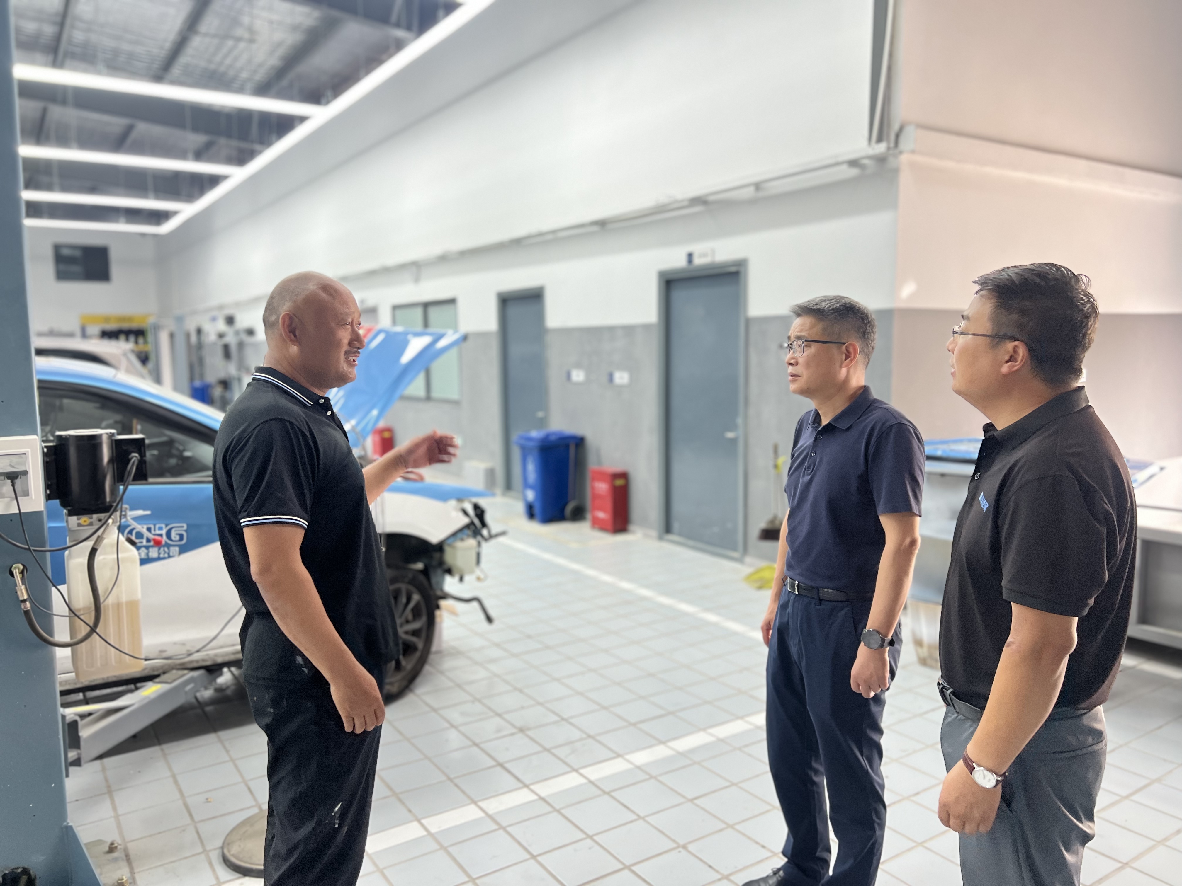 在比亞迪運營店維修車間,慰問組實地查看通風降溫設(shè)備運行狀況,詳細了解維修作業(yè)流程和勞動保護措施。仲偉濤與"全國五一勞動獎?wù)?獲得者何錫忠親切交流,勉勵他充分發(fā)揮勞模示范作用,帶領(lǐng)團隊在確保防暑安全的前提下,積極參與勞動競賽,打造更多精品工程。同時要求企業(yè)切實履行主體責任,不斷改善職工工作環(huán)境,提升職工生活品質(zhì)。