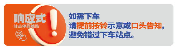“響應(yīng)式公交”是指線路不再執(zhí)行“逢站必?!?,車(chē)輛到站前,要下車(chē)的乘客需提前按鈴示意或口頭告知駕駛員。如無(wú)乘客按鈴或口頭告知下車(chē),并且??空緝?nèi)無(wú)乘客等候、無(wú)其他公交車(chē)??繒r(shí),將減速越站通過(guò)。