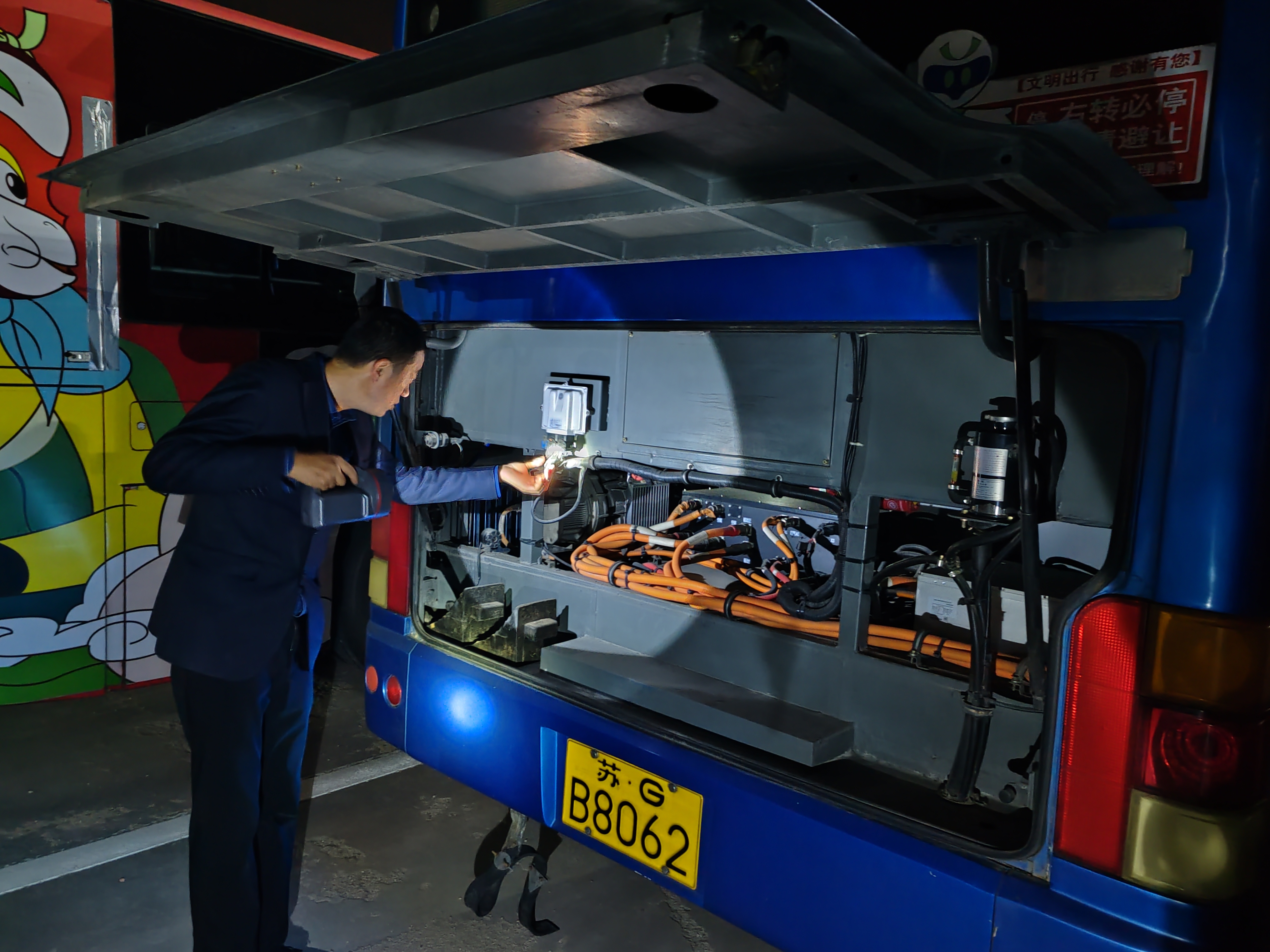 照耀夜色的燈光劃破深夜的寂靜,公交集團(tuán)權(quán)屬海通公交公司管理人員正在對場站內(nèi)的公交車進(jìn)行車況和消防器材檢查。手電筒的光束在車輛上來回掃過,秋風(fēng)中檢查人員的身影顯得格外堅定。每一項零部件都被仔細(xì)地查驗,滅火器壓力是否正常使用、逃生錘是否配備齊全,都牽動著他們的心弦。大家深知,公交車承載的不僅是歸家的乘客,更是無數(shù)家庭的期盼與安寧。